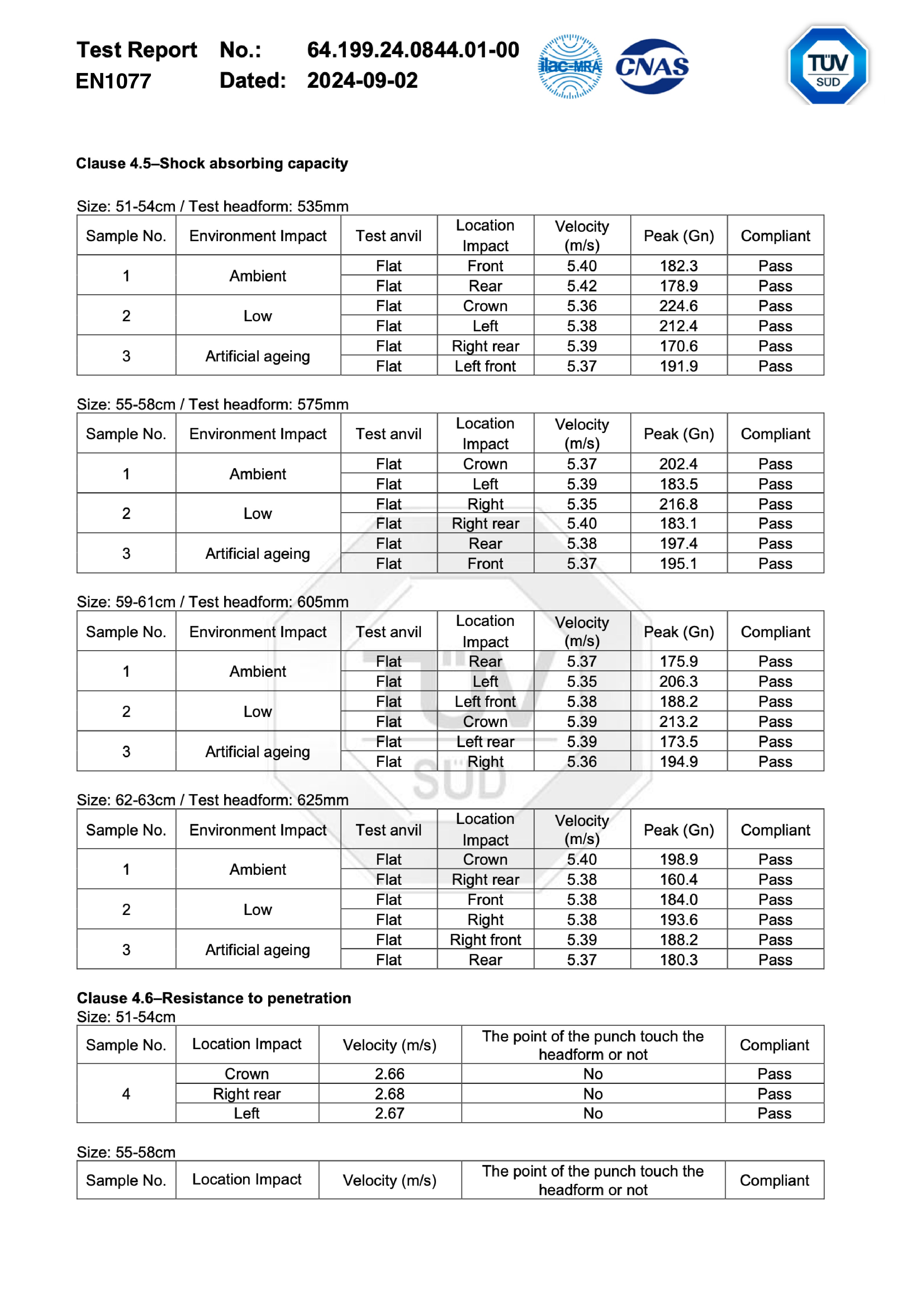 ASTM F2040 + EN1077 CERTIFICATION